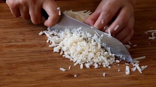 1、 把大蒜、小葱、香菜分别切成末,小米辣切成圈。