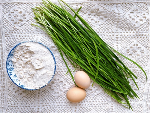 【原材料】面粉200g、鸡蛋2个(大约100g)、韭菜100g、清水250g、食盐、食用油;