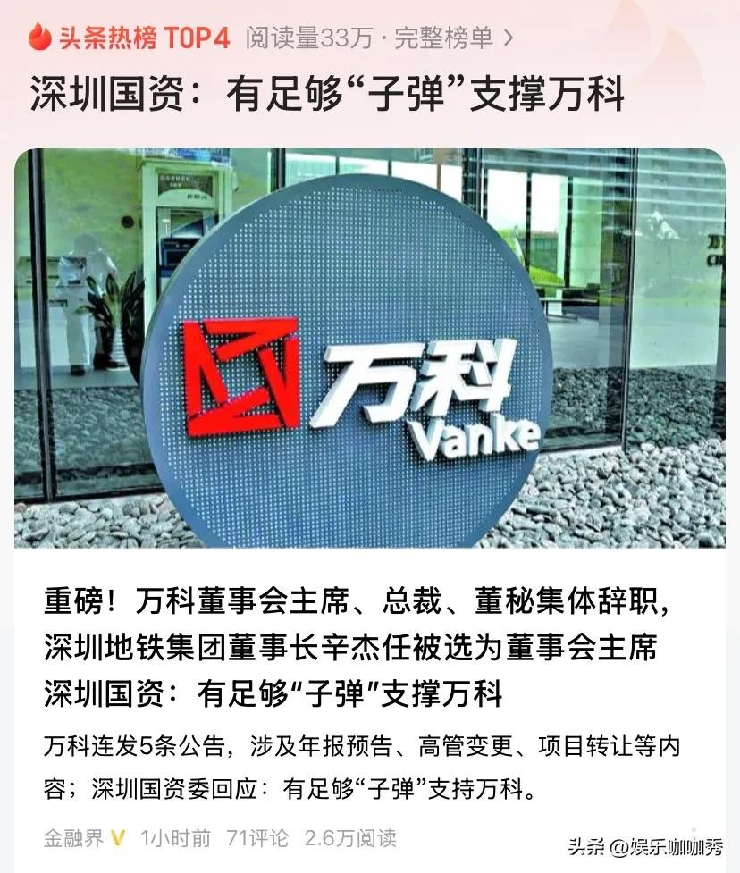 面对危局,深圳国资罕见高调表态:“有足够‘子弹’支持万科!”作为万科第一大股东,深圳地铁集团已启动**连环输血行动**: