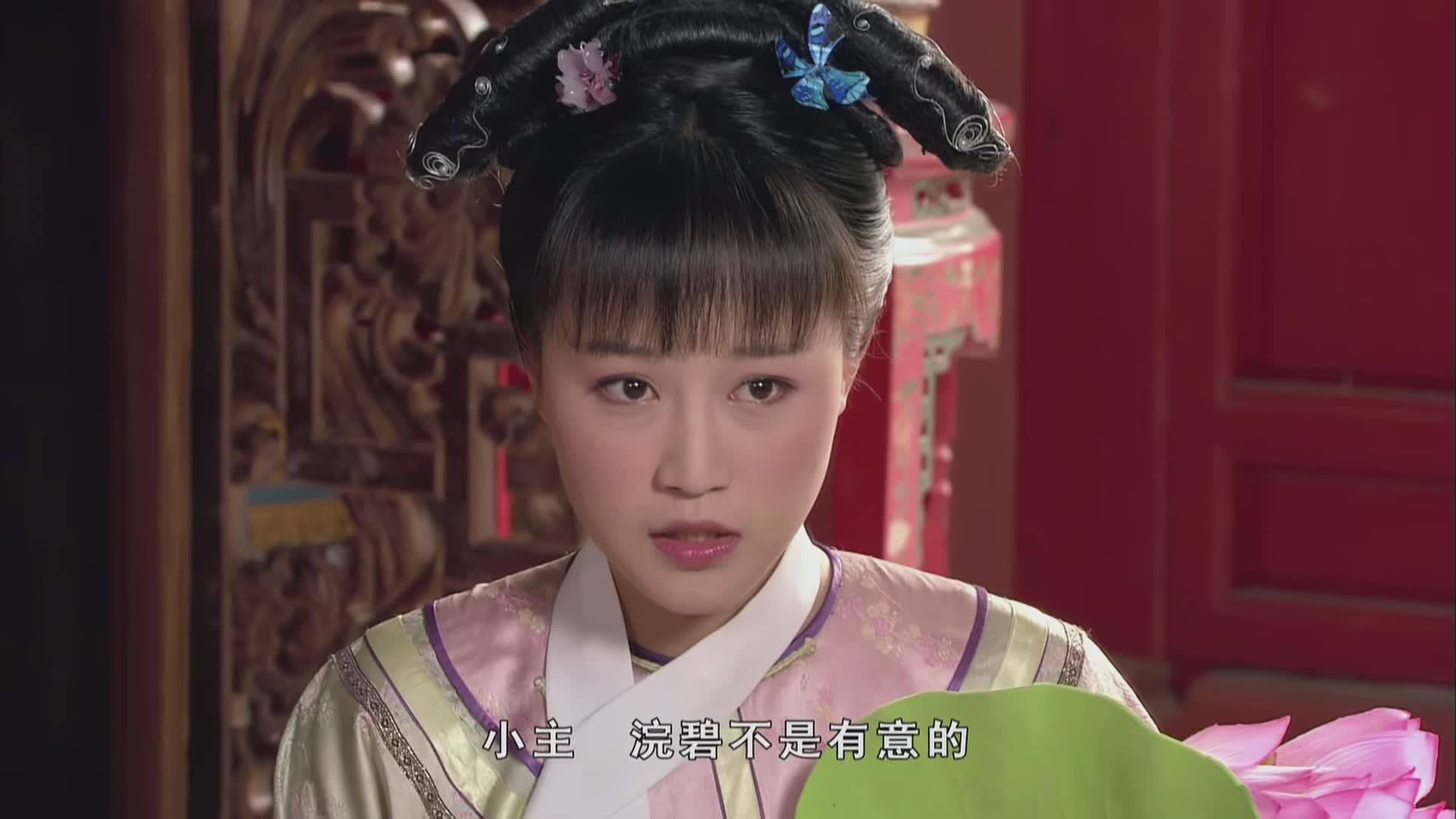 浣碧明知甄嬛与皇上在一起,仍假装不知情一般轻快地跑进殿中,成功的让皇上认出了自己,又伶俐的拿宽口瓶子放荷花,得到了皇上的一句夸奖,她心中雀跃,却不知自己的心思早已被甄嬛看穿。