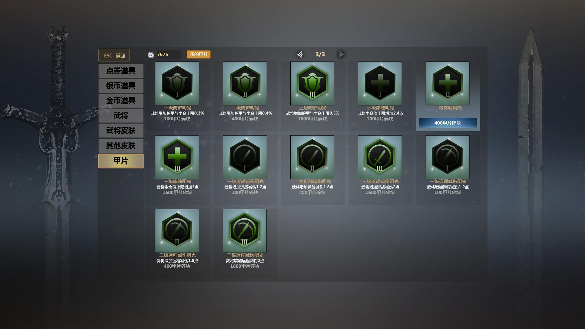 甲片的获取不需要购买,当然如果你想快速拥有可以去商城购买,每次参与军团战,人机战以及活动团战斗可以获取。甲片分近近战、远战,搭配时自己可看好了,甲片系统所在位置游戏首页的军团备战里面,还没有搞好的小伙伴们抓紧哦。