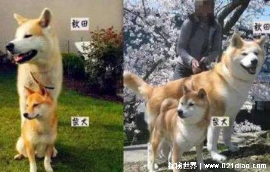 两者的体型其实是有很大的不同的,秋田犬体型要更大一些,更高一些,通过下面的图片可以看出,秋田犬明显比柴犬要高很多。也可以直接这样理解,那就是柴犬是缩小版的秋田犬。这样的话大家也可以轻松的记住两者的不同之处。