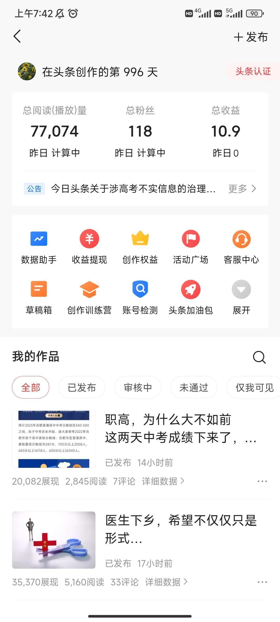 2年前注册了头条,发了一条微头条,之后就没关注了,最近一周突然发现这个微头条有一些浏览,于是研究下,就试着发些微头条,没想到一个普通人,头条也给展现量,创作热情高涨,觉得自己有了一个畅所欲言的平台