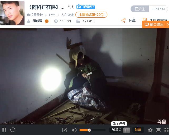 户外惊悚探险直播创始人斗鱼阿科哥在时隔大半年后,终于再次回到自己的出发点,再做探险直播经过充分的“准备”,开启夜探诡楼之旅。
