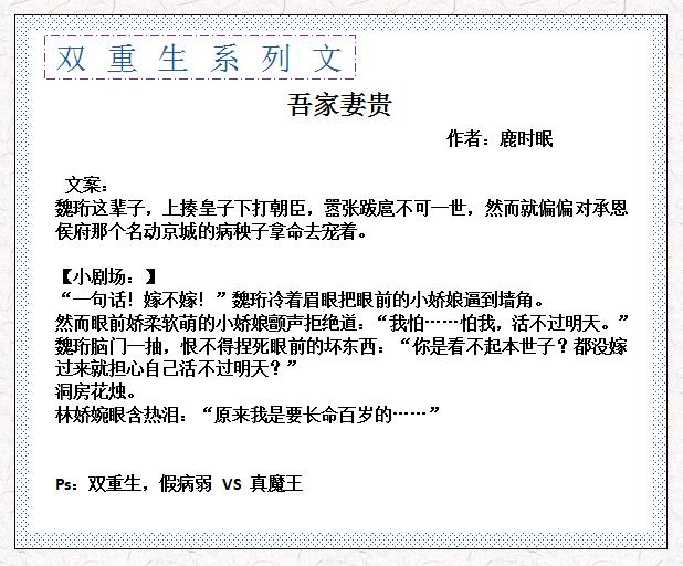 精彩分享8本男女主双重生系列文,《春暖香浓》《吾家妻贵》超赞