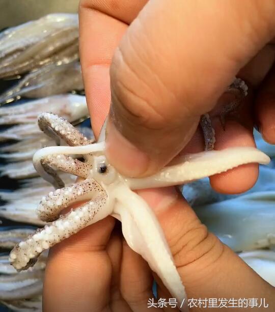 清理海兔可是一个技术活,首先把新鲜的海兔用清水提前浸泡一下,然后把爪子中间的牙齿给抠出来。