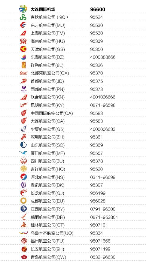 主要航空公司服务热线