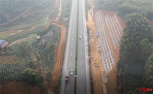 ↑成乐高速扩容施工路段。