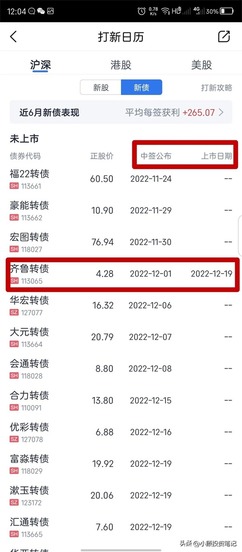 可转债破发的概率很低,收益率相对较高。建议无论新手还是有经验的投资者,都去踊跃申购。首先中签后,大概20天后可转债会上市,这个在交易软件上会提示的。