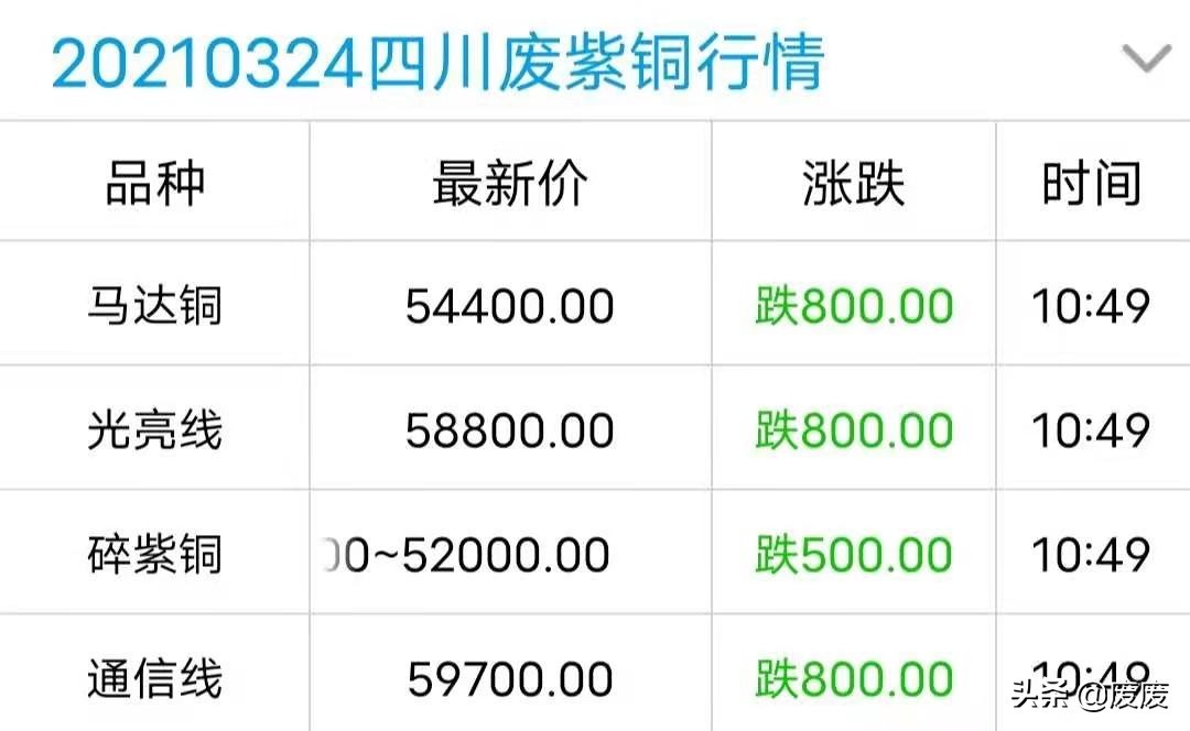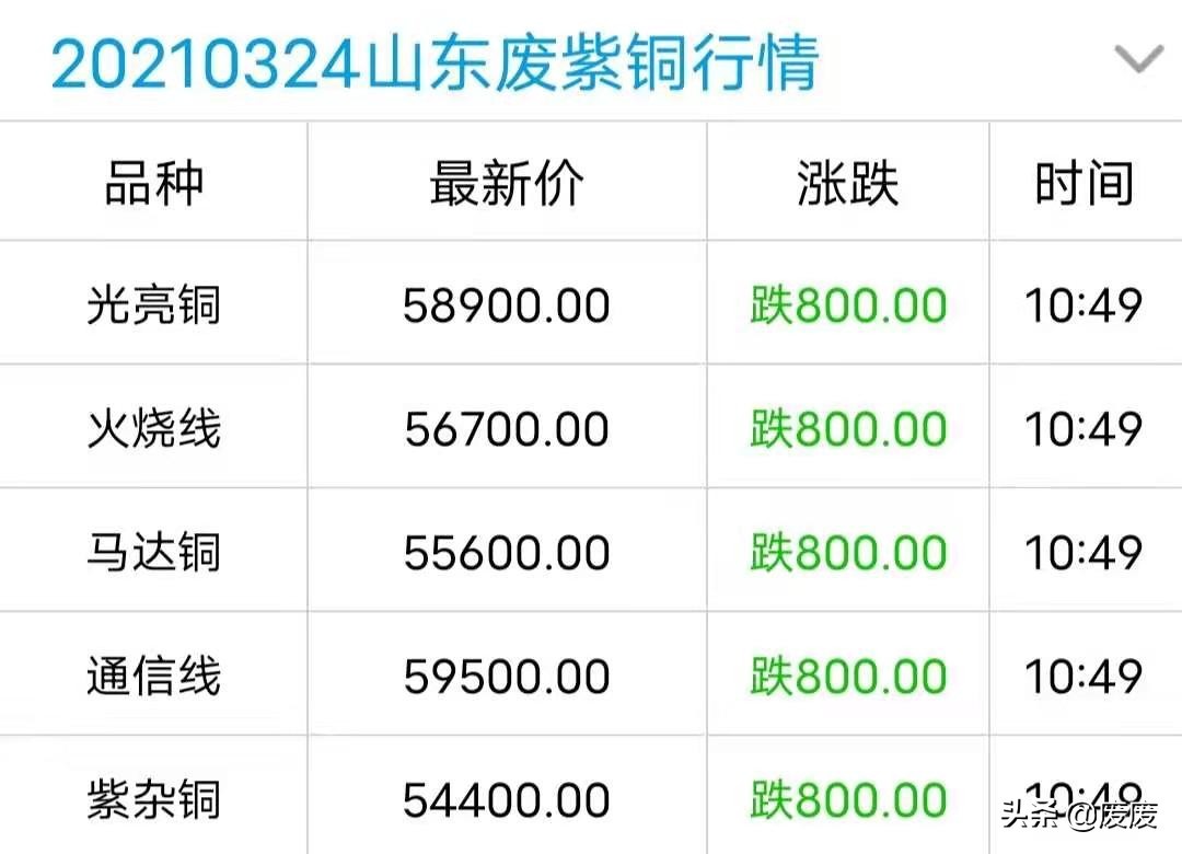 废废|废紫铜价格翻绿,最高跌800元\吨