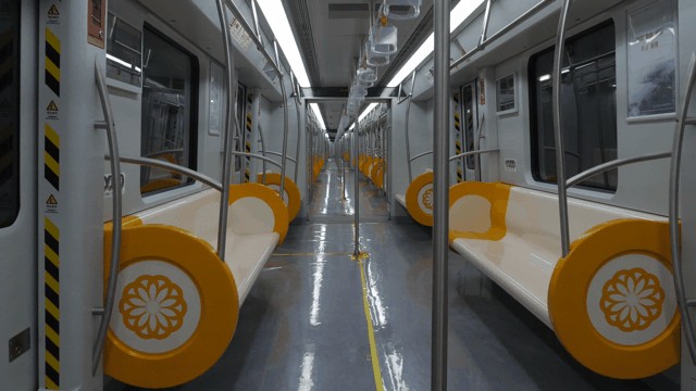 地铁4号线列车内部景象。