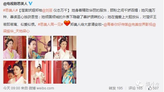 今天早上,电视剧《思美人》曝光了一组刘芸饰演的郑袖的剧照。