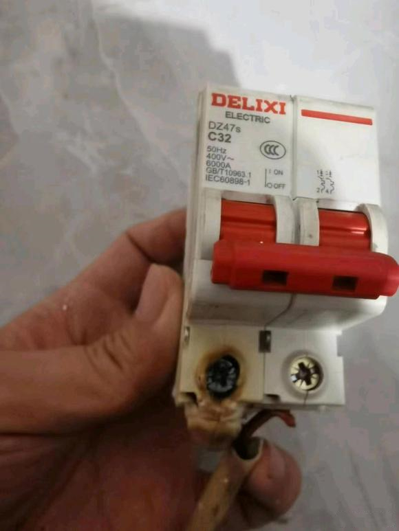 2,空气开关和导线匹配的情况下,底部的导线连接不紧密。当负载不工作时或者电流较小时一般没什么问题,而大功率负载工作的时候,虚接的位置会打火发热然后起火,这时候空气开关也是不跳闸的。
