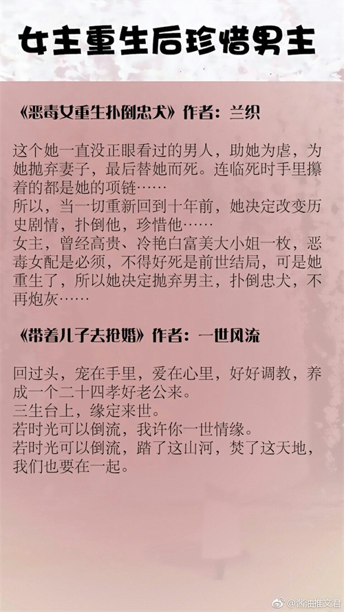今天为小伙伴们带来18本经典优质好看的女主重生文,女主重生后醒悟到自己爱上了前生深情的男主,今生决定远离渣男,奔向男主的怀抱,更加珍惜男主的爱情故事。