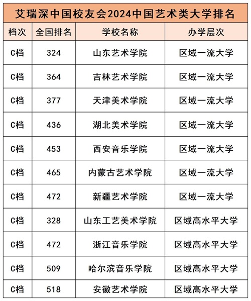 2024年国内哪些艺术类大学实力最强?根据全国第三方大学评价机构艾瑞深校友会网(Cuaa.net)对中国艺术类大学实施的分档评价,中央戏剧学院、北京电影学院、中央音乐学院、中央美术学院、中国音乐学院入选世界高水平大学、中国顶尖大学行列,获评校友会2024中国艺术类大学分档排名最高档(A档)。国内大学的二级学院(如清华美院)不参与此次榜单排名。