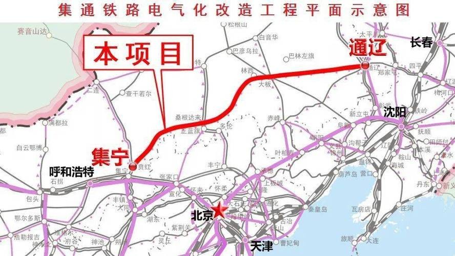 此外,集通铁路电气化改造工程自2022年8月开工建设,总投资11.89亿元,新建3座220千伏开关站,立塔1668基,并铺设长达581.8千米的20条外送线路,为集通铁路10个牵引站提供双电源供电保障5。改造完成后,客货运输能力将大幅提升,年货运量将由最初的3600多万吨提高至8000万吨以上,列车运行速度也将显著提升6。