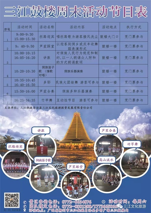 景区地址:广西三江县城多耶广场三江鼓楼内