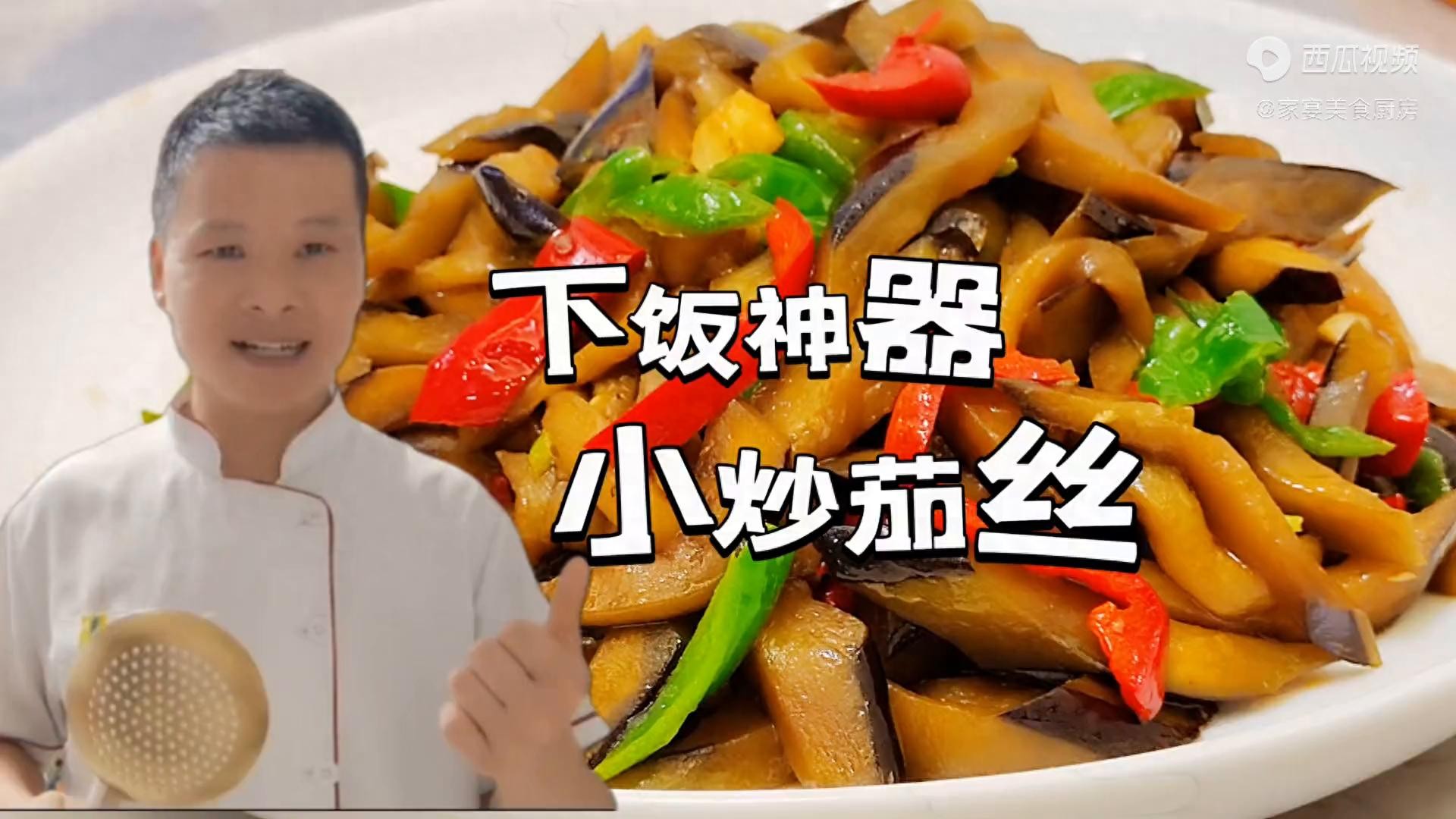家常下饭菜:“小炒茄丝”,不油炸超简单,好吃不油腻,特...