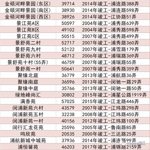 以下是小编根据知名房产网站统计的浦江镇大部分小区二手房价格数据(含小区:世博家园,滨浦新苑,汇秀景苑,金硕河畔,景江苑,景舒苑,闵浦新苑,浦江宝邸,浦江华侨城,浦江丽都,浦江瑞和城,水语人家,欣佳宝邸,永康城等),供参考!
