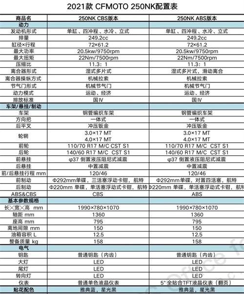 高配版250NK的仪表升级为5寸全贴合TFT仪表,支持导航功能。