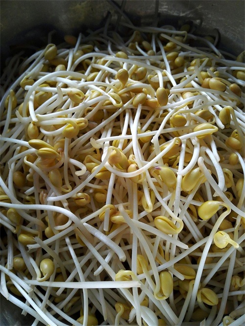 11、这是发好的豆芽,用了四天半的时间,豆芽在吃的时候,豆芽根可去可不去,当然也可以在它没长根时,取出提前食用,豆芽脆嫩,干净卫生,怎么做都好吃。