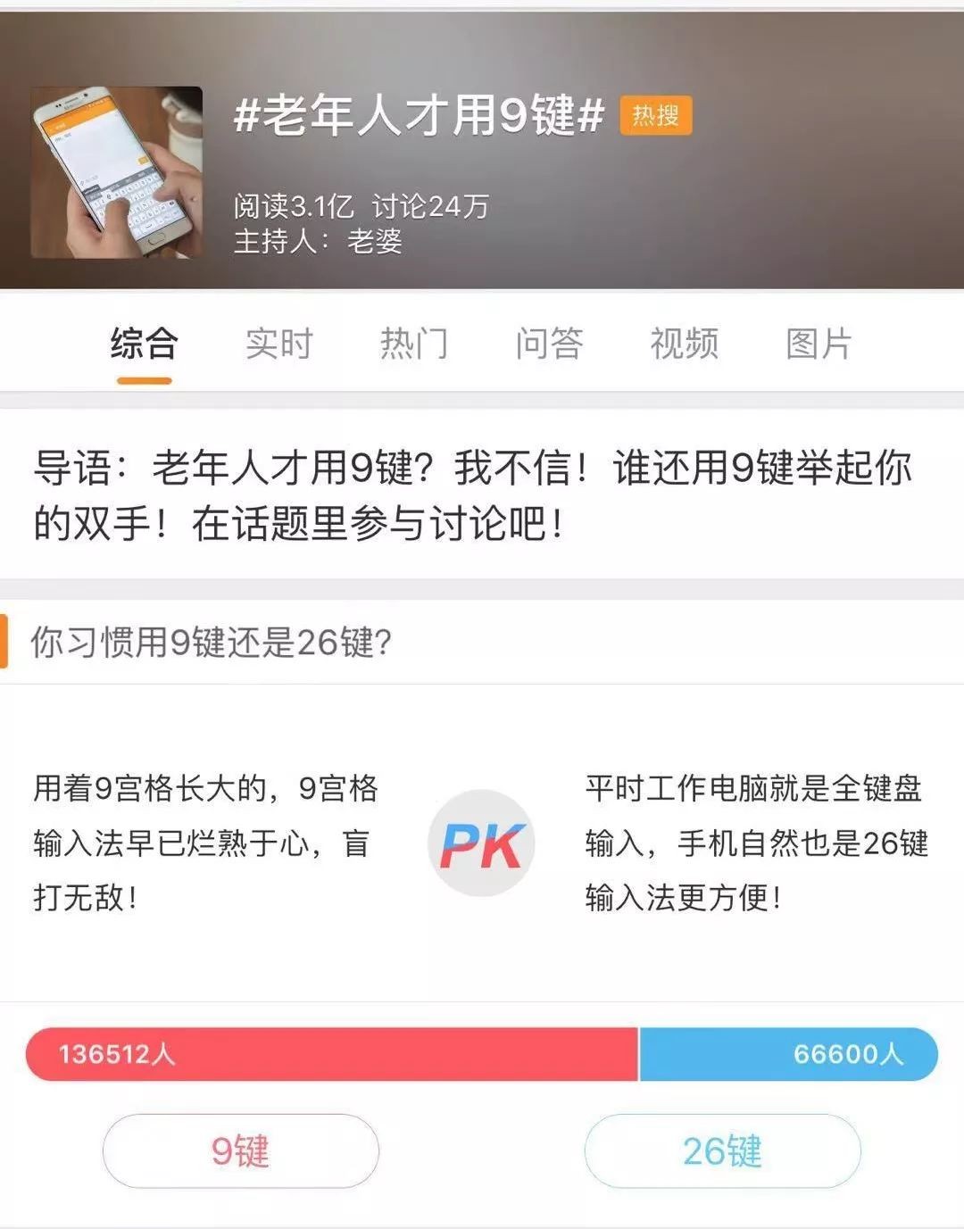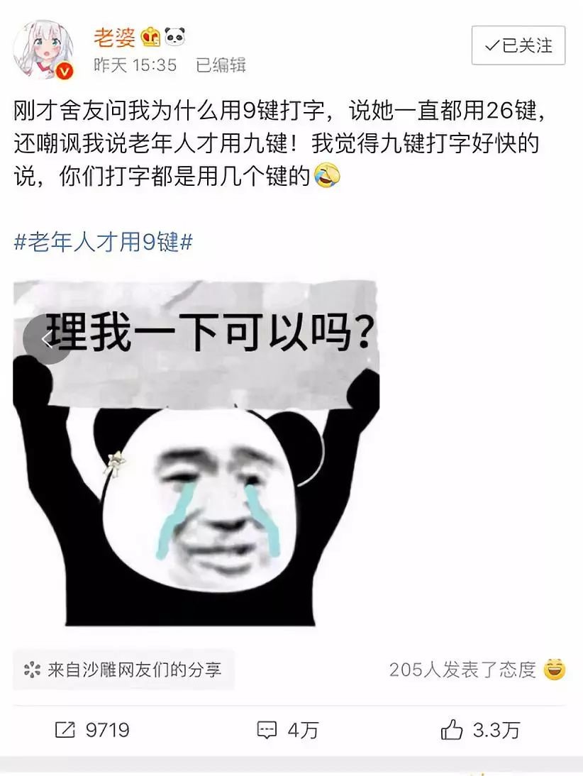 今天在微博看到#老年人才用9键#这个话题的时候,我默默地拿出手机,看了一眼输入法,可能我变成了一个表面年轻化的“老年人”!