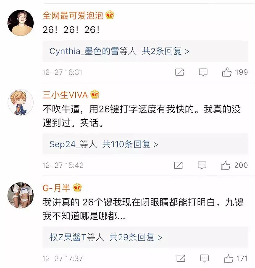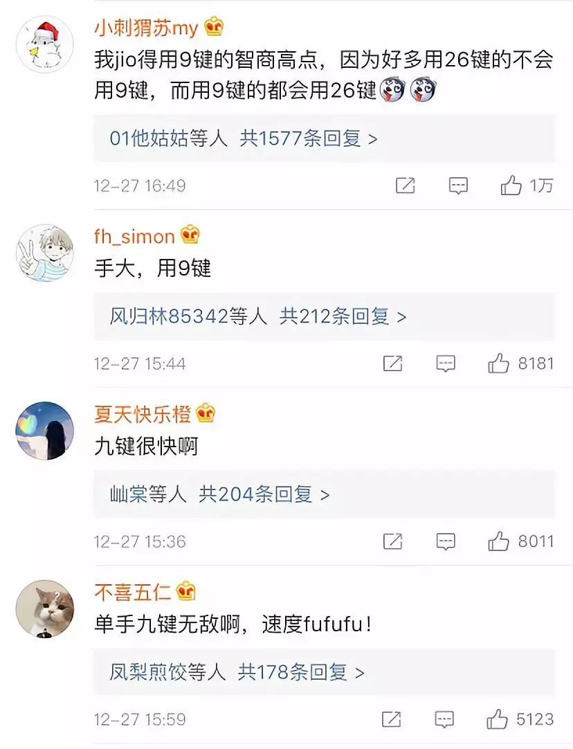 网友在为到底是9键好用还是26键好用开始了激烈又友好的讨论。