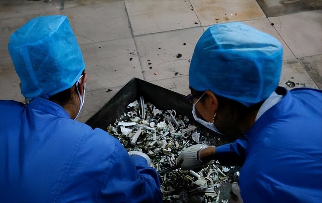 冷却后开始分拣骨灰:有的烧不坏的“硬骨头”由家属决定是否敲碎,之后装进骨灰盒。
