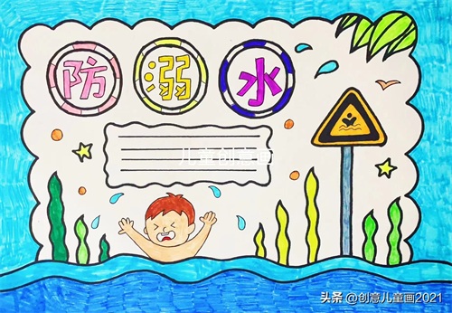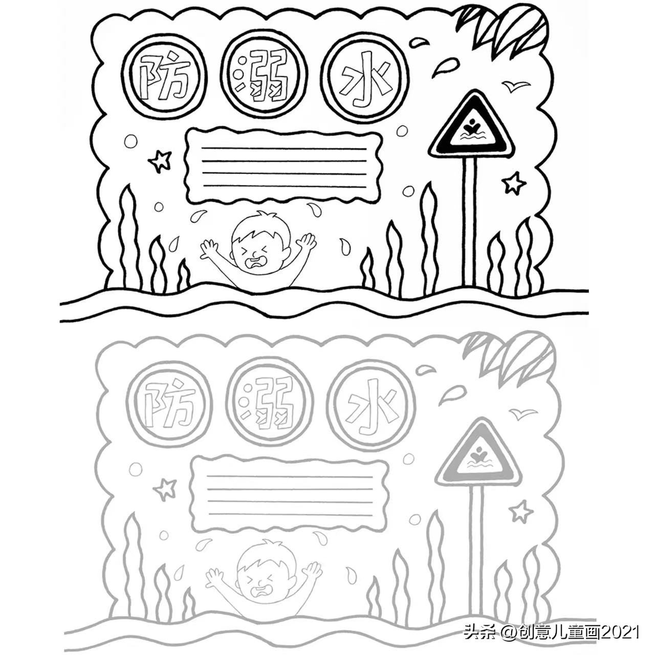 暑假防溺水手抄报模板2,可打印线稿直接涂色~手抄报轻松完成