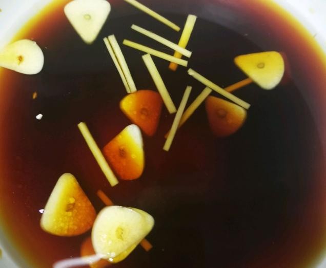辅材:水100毫升、酱油50毫升、味淋30毫升、白糖一大勺、蒜一粒、酱丝少许