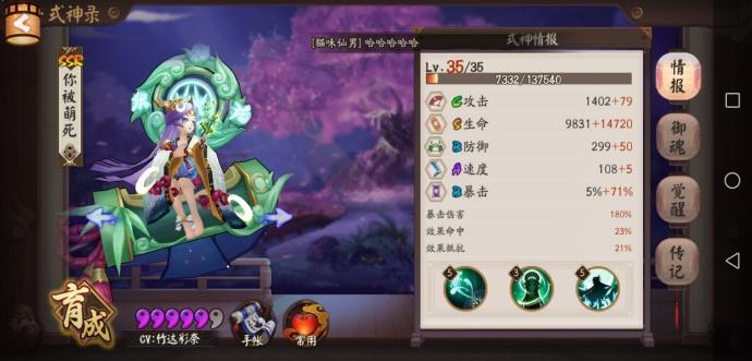 阴阳师带比基尼,技能封御魂和回血,主要是要的被动解除控制~很灵性。