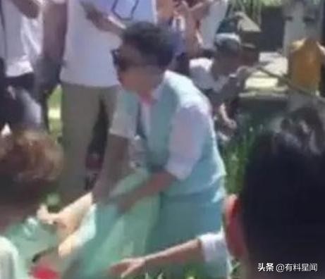 柳岩当时穿着浅绿色薄纱款的长裙,可想而知,如果被扔进水里,柳岩肯定会全身湿透,甚至走光。