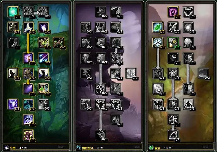 枭兽形态下德鲁伊打副本不行,但是在战场上大放异彩!风暴前夕开了,猫德也有了一战之力,但是依然脆皮加便秘,不得不变个熊来慢慢抓痒痒,最终拖来了不是盟军就是敌人。平衡天赋下德鲁伊就显得灵活多变。打战场就得眼观六路,耳听八方。情况不妙走为上策,有时候也需要拼死一搏,像个烈士一样的惨烈牺牲。