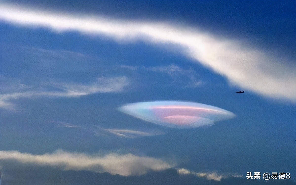 当然还有一种云也非常容易误会,比如飞碟状的云彩,上图中还是彩虹状的,会不会有朋友怀疑UFO躲在里面?