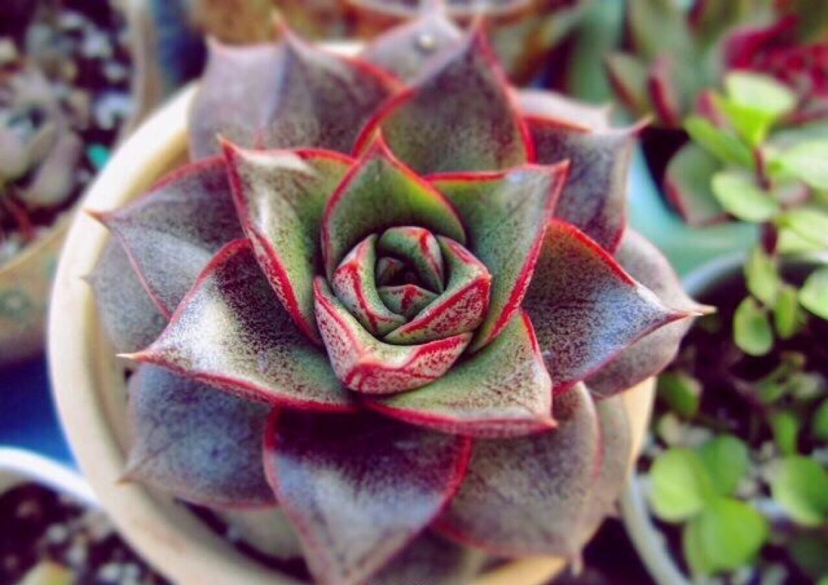 大和锦是景天科拟石莲花属的多肉植物,其实现在国内市面上常见的大和锦均为杂交品种“酒神”(Echeveria 'Dionysos')它原产于墨西哥,因为发音相似的关系,也有人叫它为大合锦,也可能因为叶片形状像三角的关系,过去也有人称呼为三角莲座草。大和锦因其很难长徒,不管是种植在室内还是室外,都非常合适,其密集的莲座状叶片,层层合抱,不同光照环境下,呈现不同的色泽,颇具看点。
