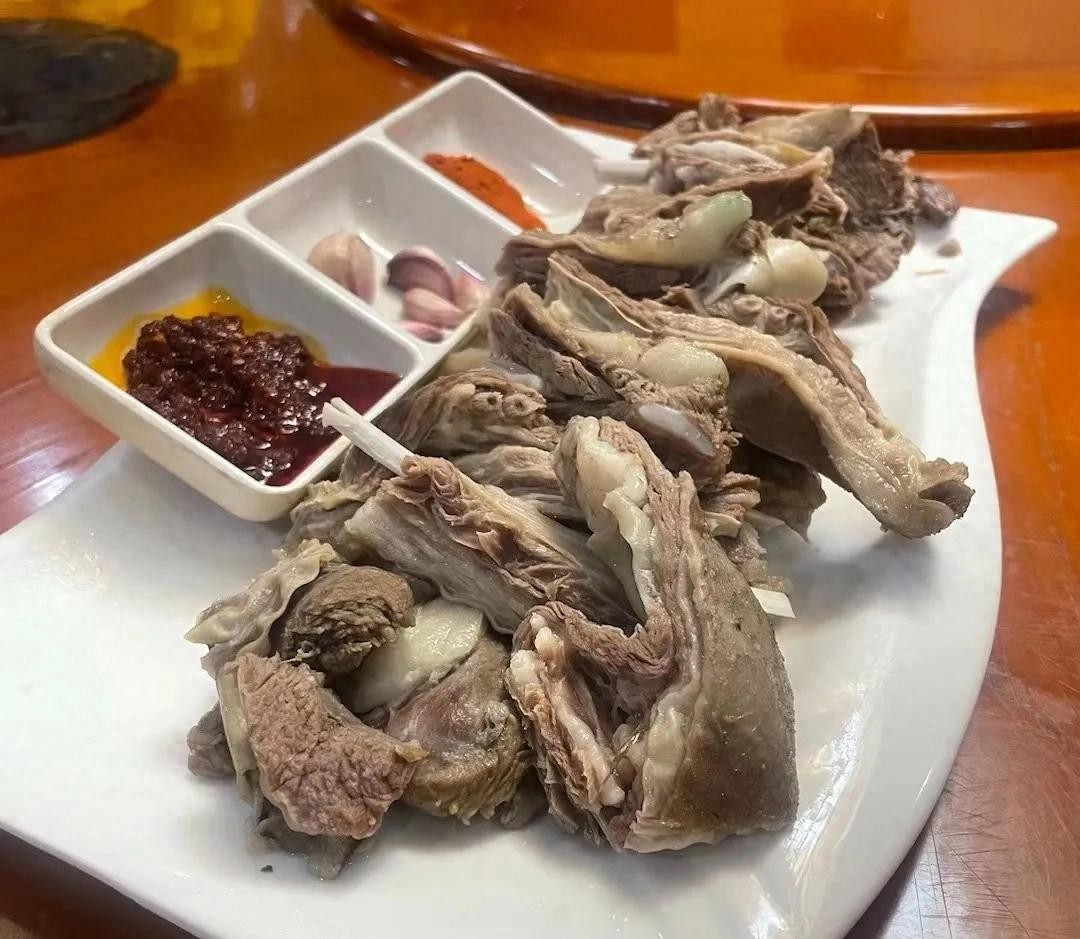 手抓羊肉是青海传统美食,选用青海草原的绵羊,肉质鲜嫩无膻味,用清水加盐煮熟,原汁原味。吃时直接用手撕,蘸椒盐或蒜泥,配生蒜更地道。