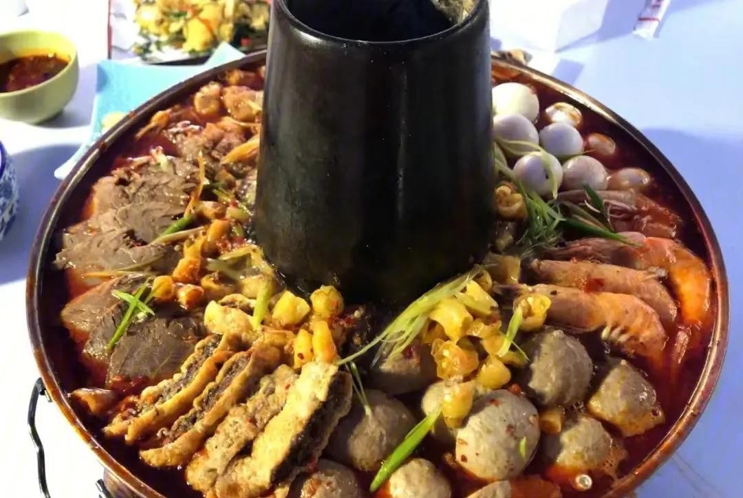 土火锅是青海西宁的传统特色美食之一,其特点是铜锅炭火,汤底浓郁,食材丰富,常见的有:牦牛肉、羊肉、土豆、粉条、豆腐、蘑菇、青菜等,层层铺满,分量扎实。是青海饮食文化中的重要代表。