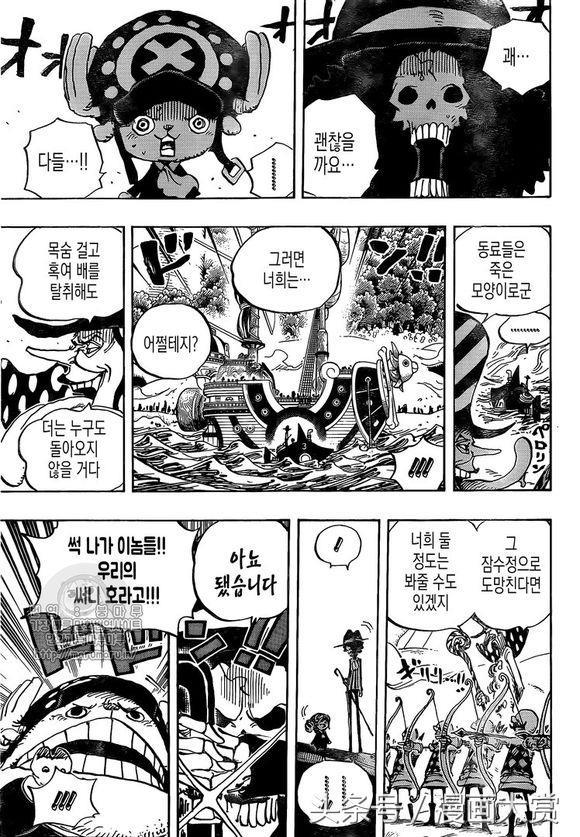 乔巴跟布鲁克驾驶着鲨鱼三号潜水艇,前去与路飞等人在桑尼号汇合