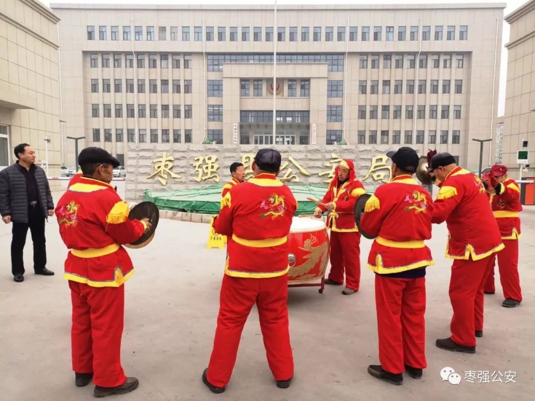 1月30日上午,阵阵锣鼓声在枣强县公安局门前响起,村干部送来“人民警察为人民、破案神速讲效率”的锦旗,这是村里朴实的群众,对尽职尽责的枣强公安民警热情洋溢地礼赞!