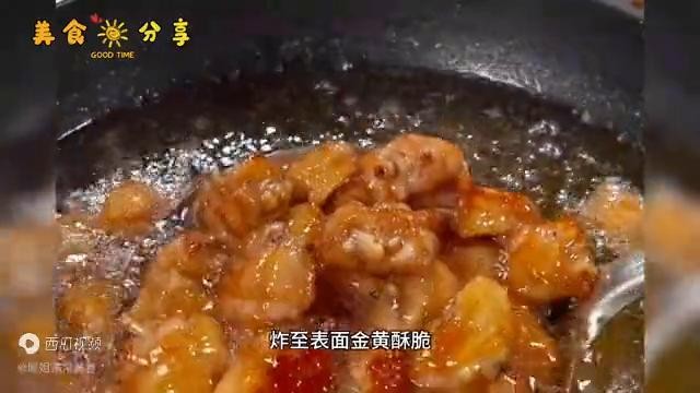 →6成油温下锅,开中小火慢炸,炸至表面金黄酥脆。