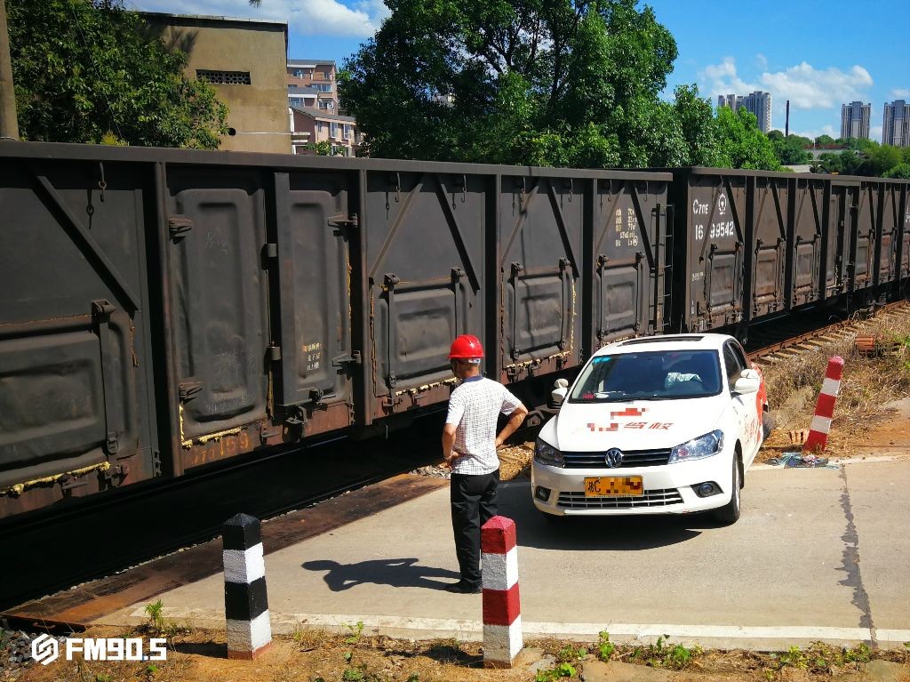 “我们的车辆在离这个道口大概是200米的位置,警报就自动启动了。这个报警灯一直在闪烁,喇叭一直在报警:火车来了注意安全,一直要等火车通过道口之后才自动停下来的。但是我们的机车到了这个道口的时候,教练车正好过来,一下就碰到车头上面。” 湘潭电化集团安保部工作人员彭晓光告诉905记者。