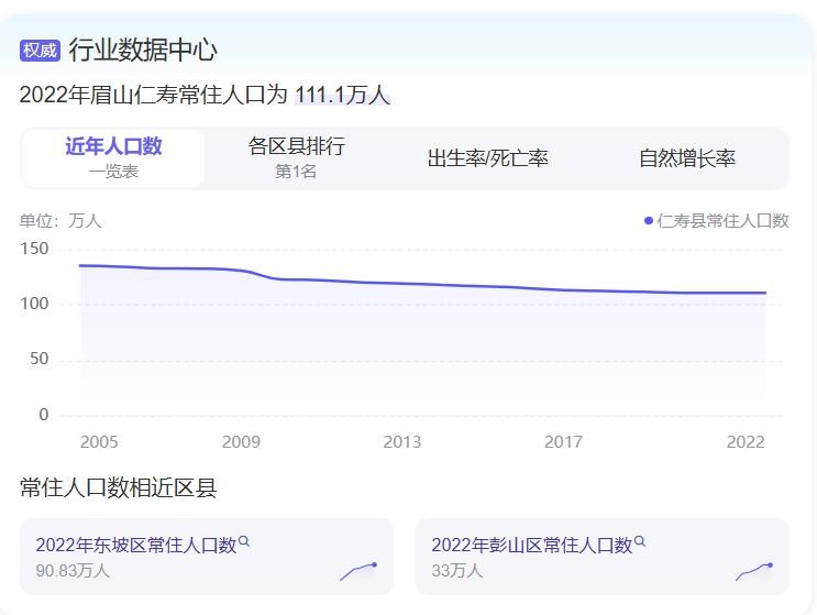 行业数据显示,截至2022年,仁寿常住人口111万,相当于一个中型城市。