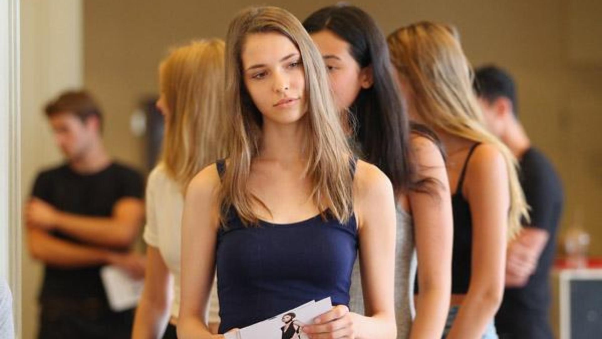 当然,没缺席的模特也未必能清楚自己的主要工作,只知道是来试镜的。走廊里挤满了又高又瘦的模特,工作人员会给她们发号码牌,然后让每个模特独自走一段猫步。