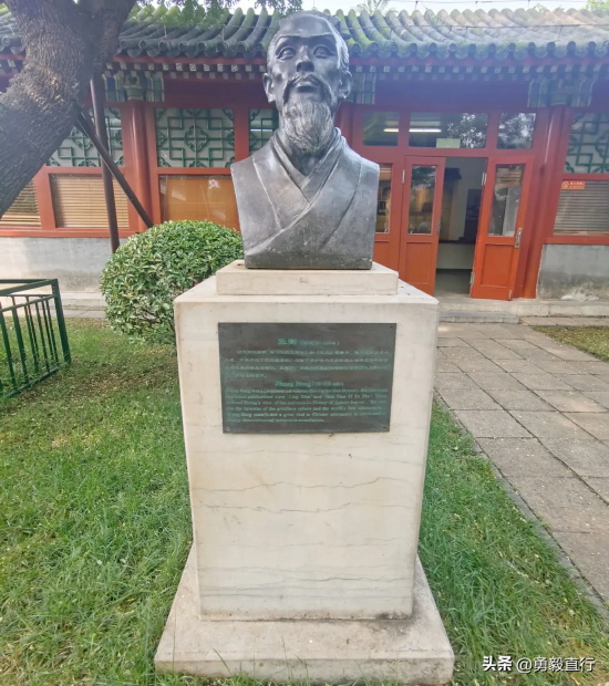 从古观象台下来,回到四合院,一进门右侧石碑是1905年立的,记录义和团事件后,观象台损失了一部分仪器,为了延续天文观测,需要再造地平经纬仪和天体仪,因财政困难只能造原来大小的一半的仪器,还列出了所需的各类款项。四合院中两侧是天文学家塑像,都是历史名人祖冲之、南怀仁、张衡、汤若望等。院内陈放着明代铜制浑仪和简仪的1:3复制品,以及郭守敬正方案1:3复制品。还有各种天体仪器的复制品,其中月晷和星晷比较少见,月晷是观测月球方位变化来定时的工具。星晷是夜间利用观测恒星来定时的工具。