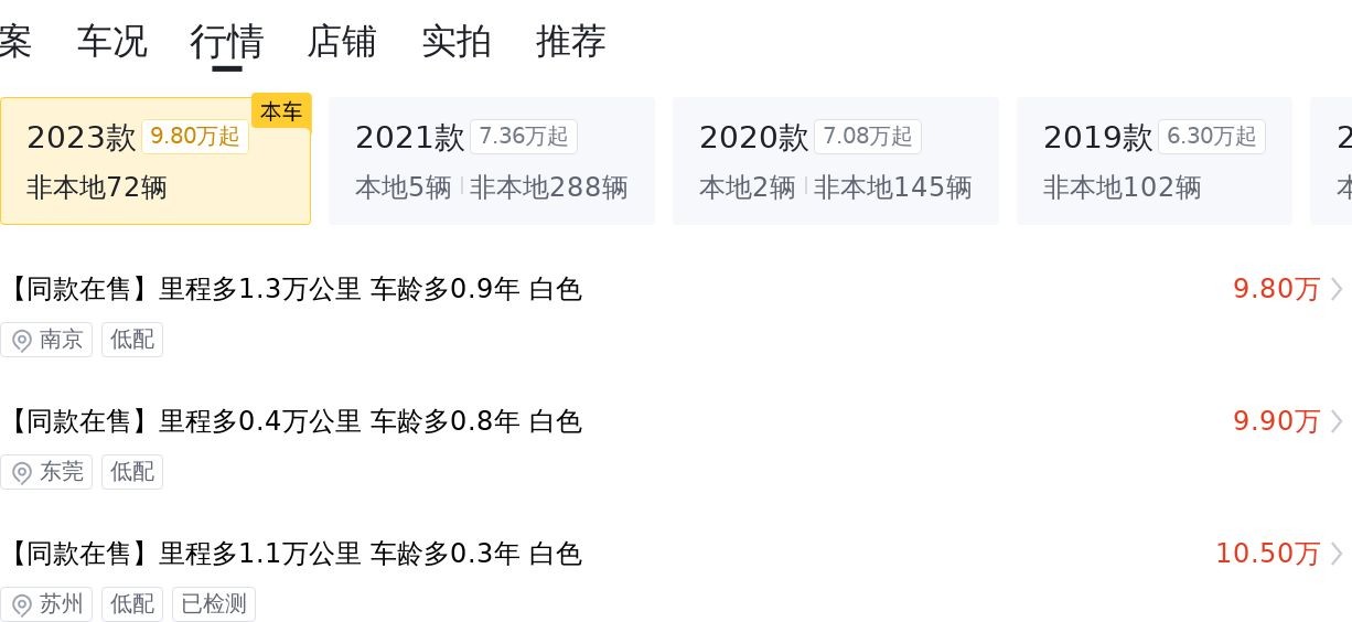 市场行情及用车成本
