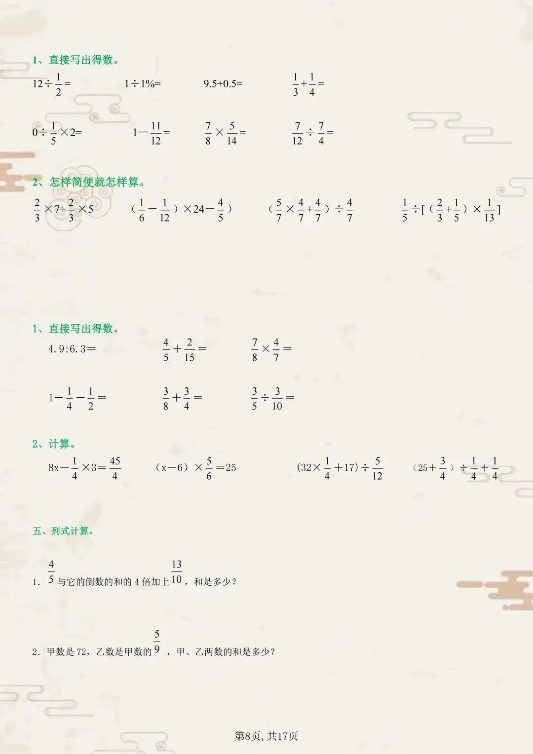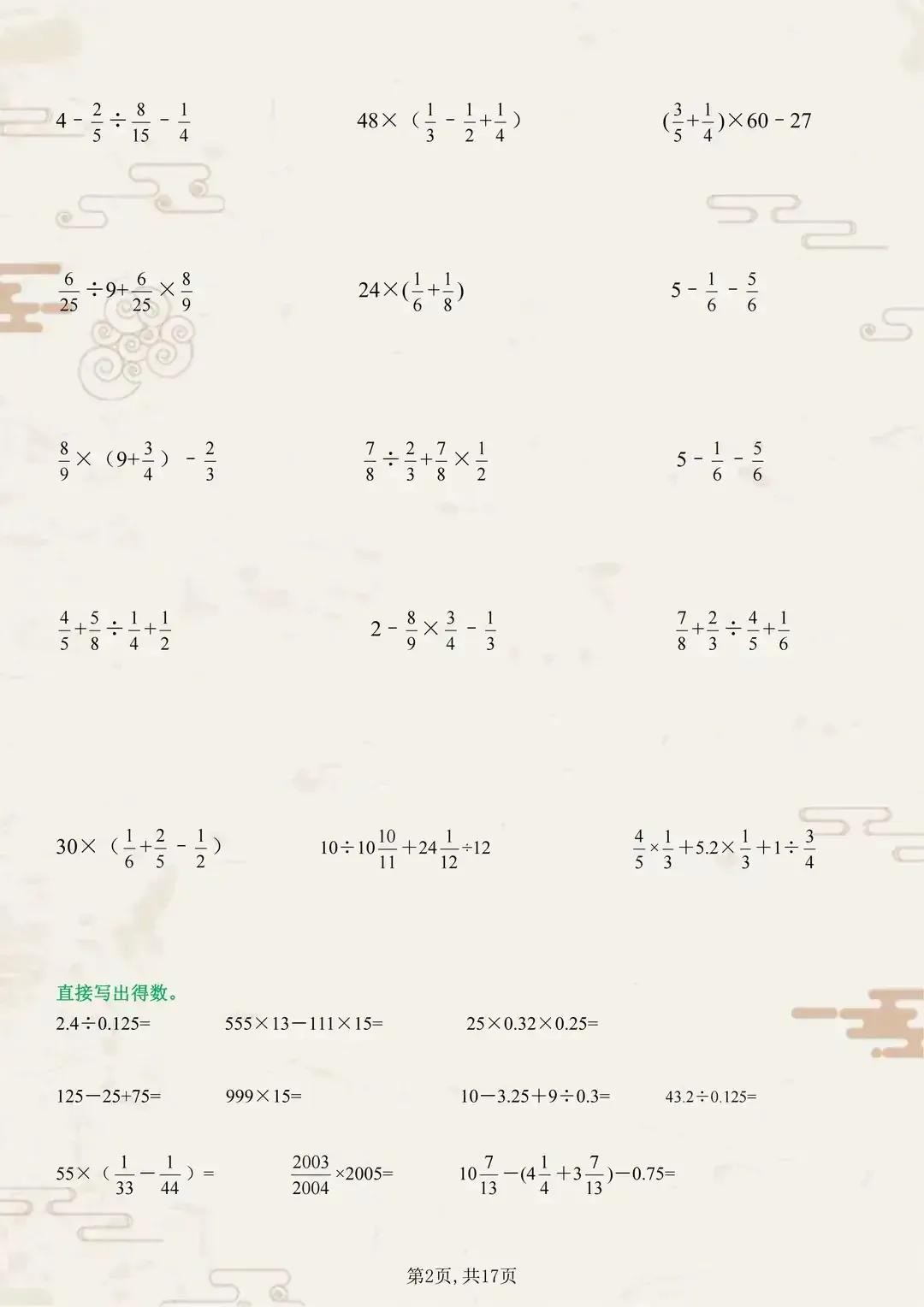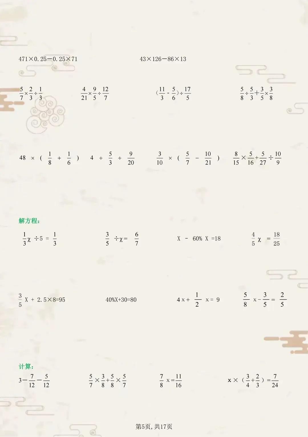 六年级的数学学习进入了一个新的阶段,计算题在这个阶段变得更加复杂和具有挑战性。为了帮助同学们更好地掌握六年级上册的数学计算,我们特意准备了一系列典型计算题训练。