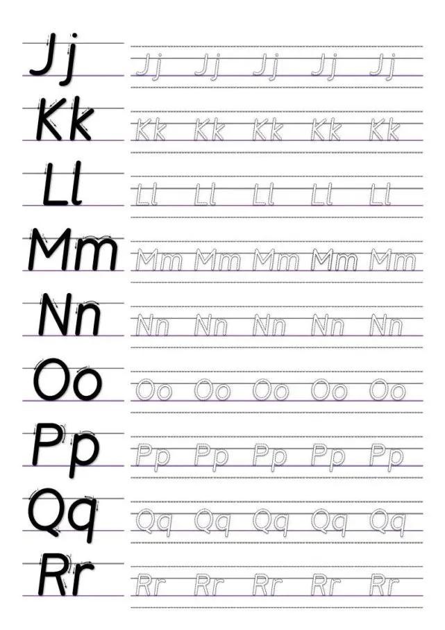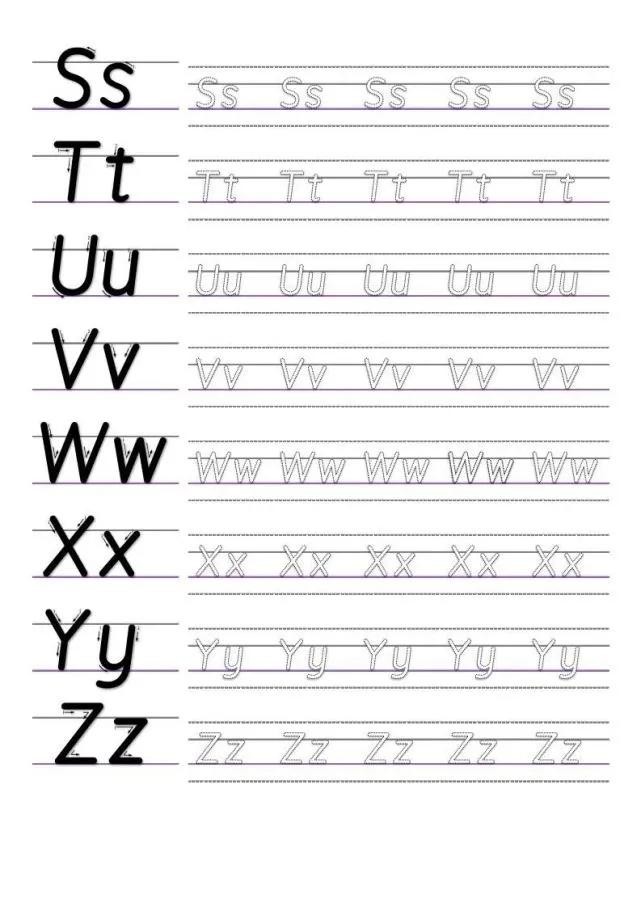 分享三张字母字帖给大家,可以打印出来贴墙上。