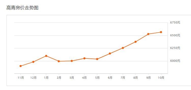 高青10月二手房均价 6565 元/平方米高青9月二手房均价 6527 元/平方米环比上月上涨 0.59% ↑,同比去年同期上涨 9.65% ↑