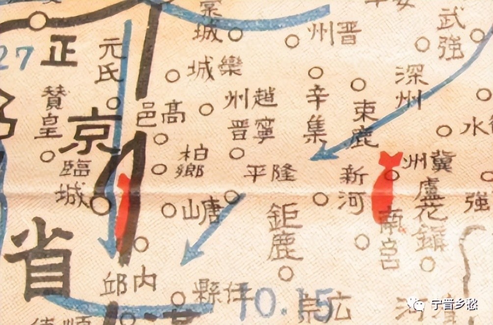 「日本侵华宁晋铁证」1938年侵华日军地图标注的宁晋