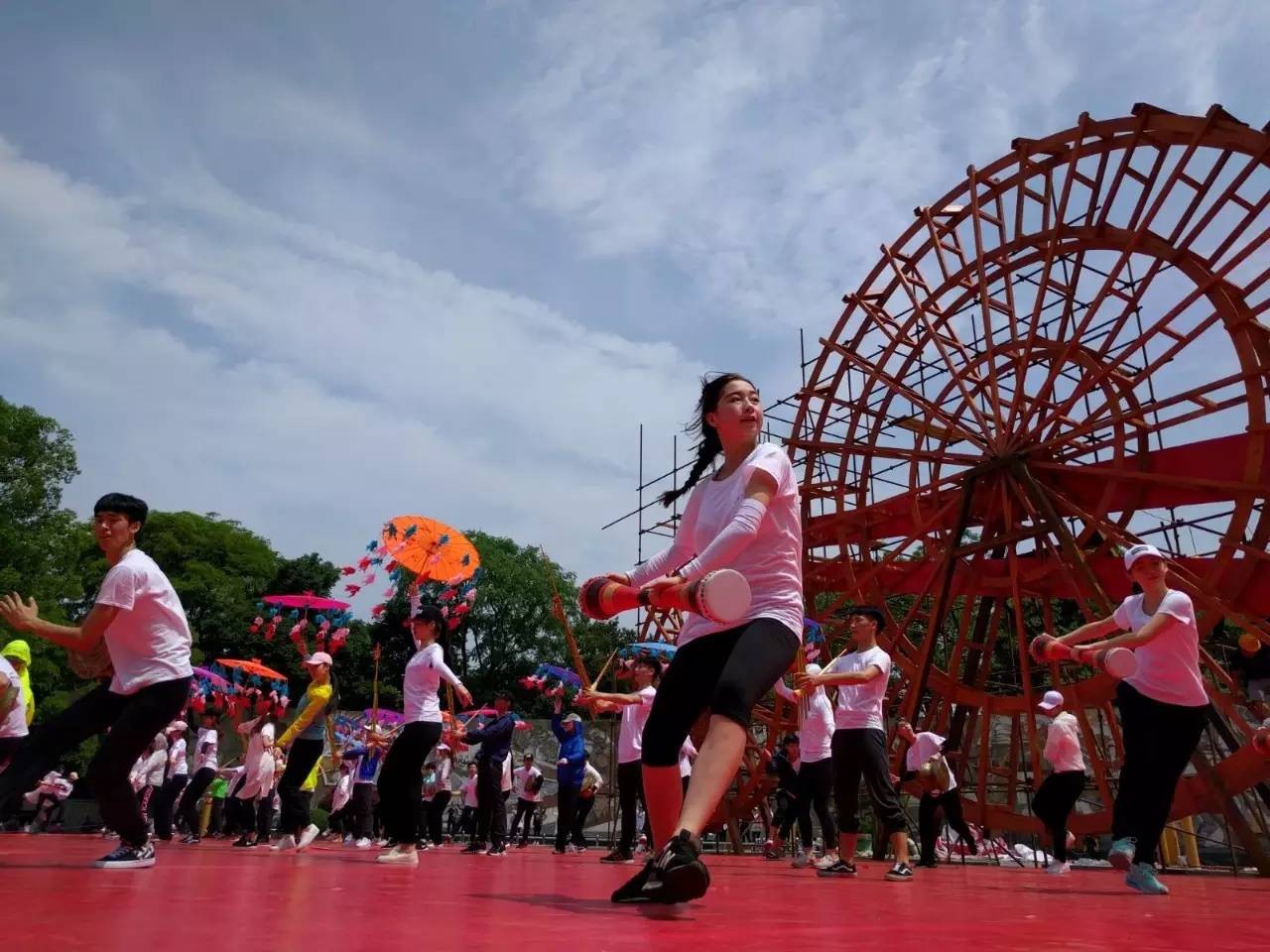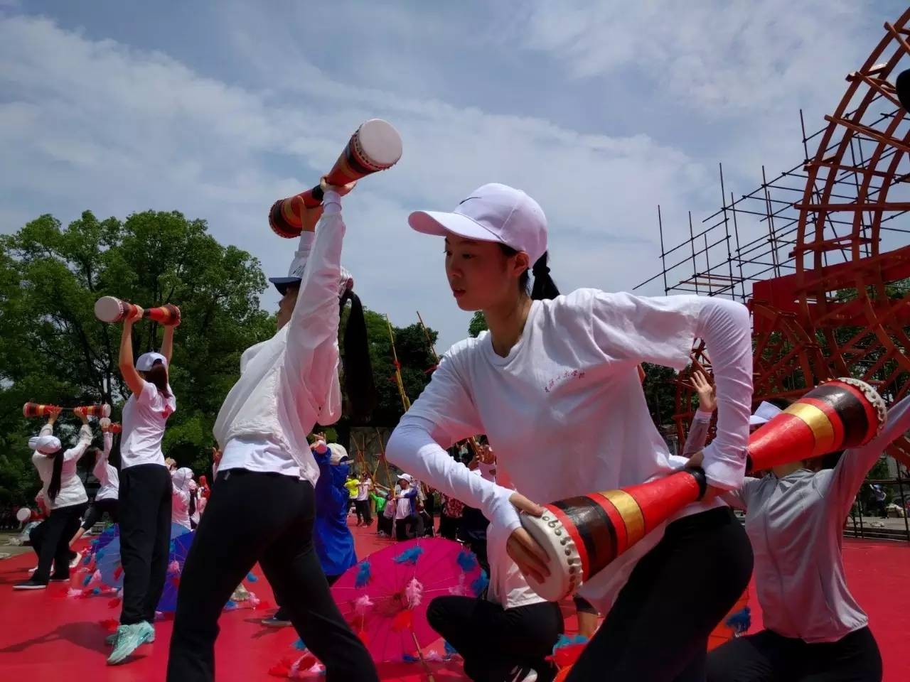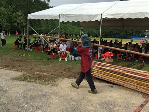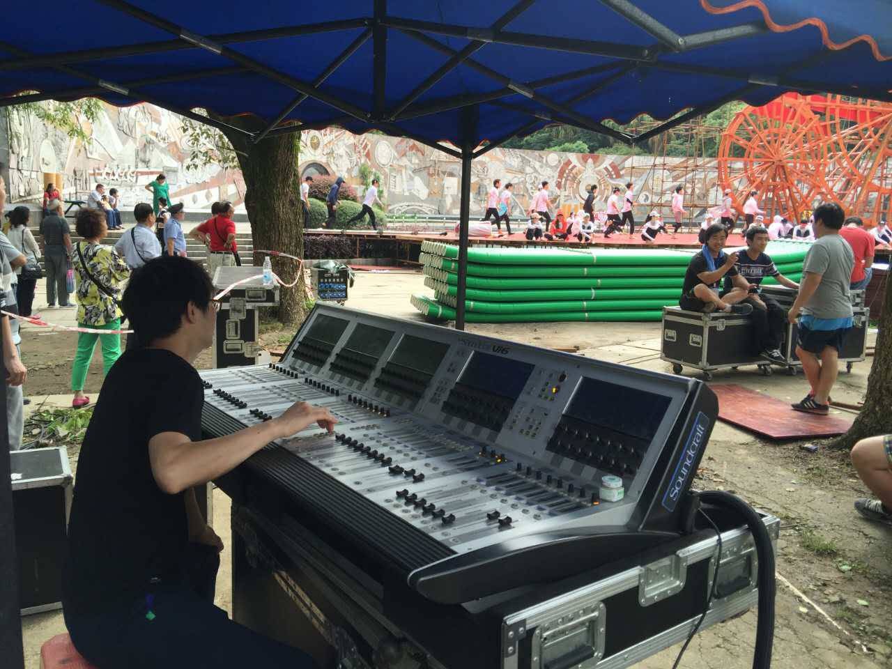 现场的各个工种都在有条不紊地进行着最后的准备工作,不管怎么说,原本担心的雨没有来,我们虽然被晒,但是心里很开心。